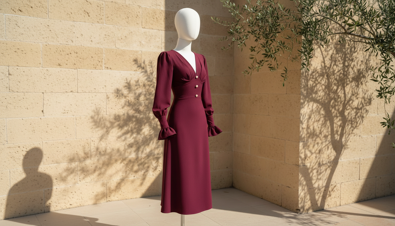 Robe Rouge Froncée – Épaules Dénudées & Manches Longues